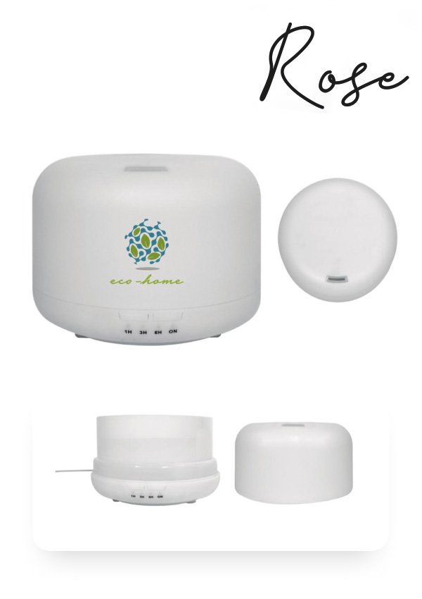 Aromatizador de ambiente con 7 tonalidades de Luz que se van alternando. Cuenta con un botón de timer que permite regular el tiempo de salida del vapor a 1, 3, o hasta 6 horas.